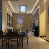 本套为欧美风格装修,客厅地面采用的是大理石装修,局部采用的是地毯进行装饰,墙面采用的是乳胶漆进行装修,吊顶采用石膏板进行平顶吊顶,加以吸顶灯做装饰,空间以现代时尚、舒适为主。墙面以米黄色漆为主色,配以现代时尚的墙布,结合时代气息的黑镜车边等等装饰元素,使空间高贵典雅,温馨大方,而又尽享低调的奢华,整体给人一种干净大方,精致,明朗宽敞舒适的家,来消除工作的疲惫,忘却都市的喧闹。